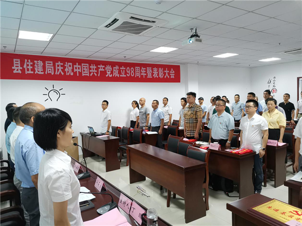 會議安排觀看了紀念“七一”微視頻《我宣誓--》,并宣讀了表彰決定。住建局黨委書記、局長陶海波同志給全體黨員上了一堂微黨課——《信仰的力量》,并向各黨支部派發了“黨支部建設工具箱”及《習近平新時代中國特色社會主義思想學習綱要》,全體黨員還重溫了入黨誓詞。