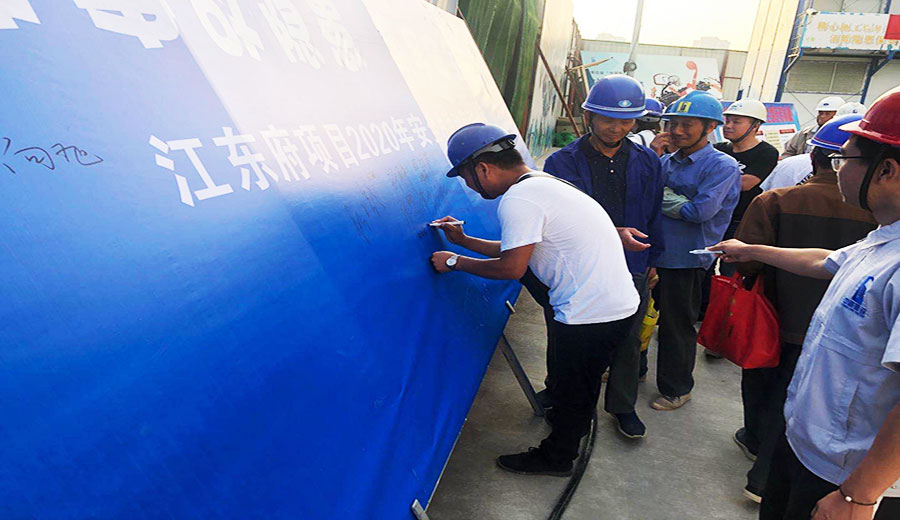 為了讓一線工人全面融入到安全管理中來,各項目部組織施工人員在安全月橫幅或展板上簽名,并在安全晨會中開展宣誓、承諾活動,力爭取得實效。