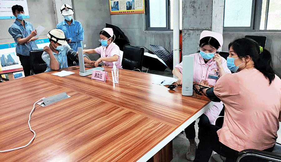 各項目部積極聯系體檢機構,為所有工友免費“送健康”,利用每日晨會或休息時間,將防暑藥品、降溫物品免費發放到工友手中。