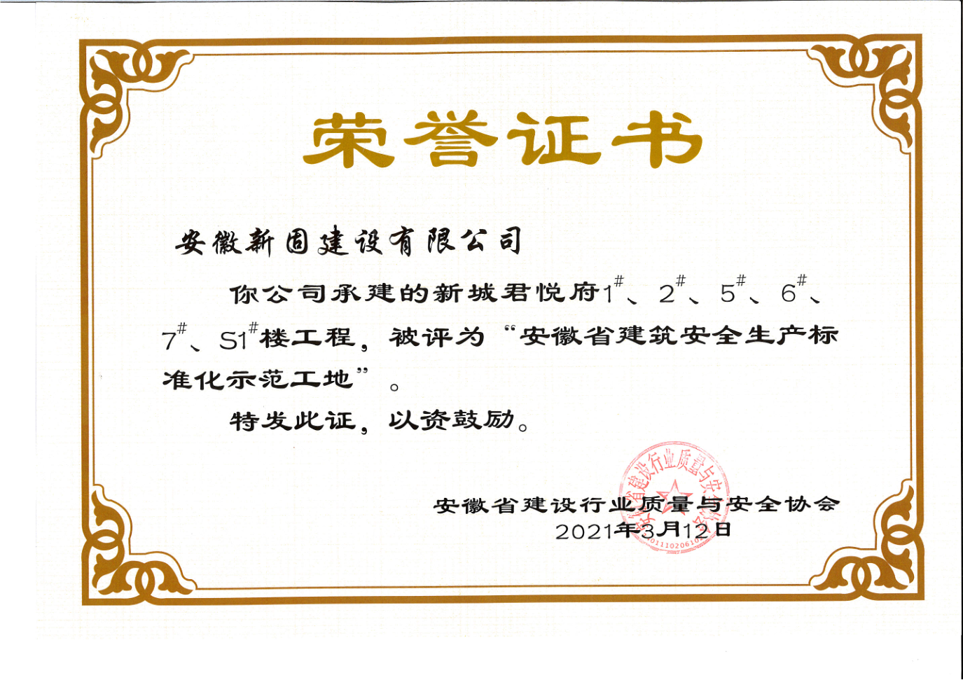 安徽省建筑安全生產(chǎn)標(biāo)準(zhǔn)化示范工地(新城君悅府)