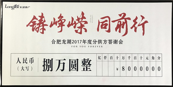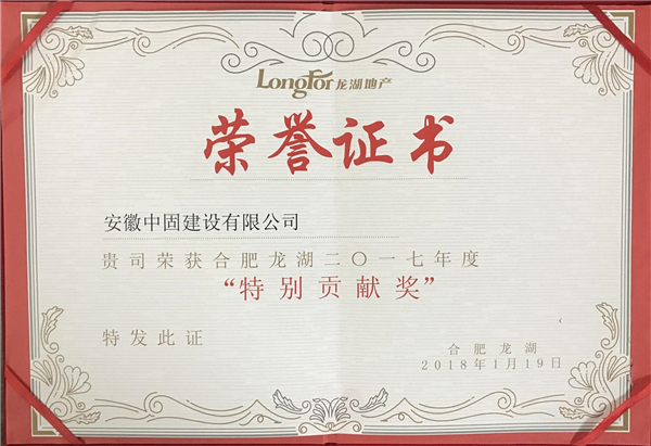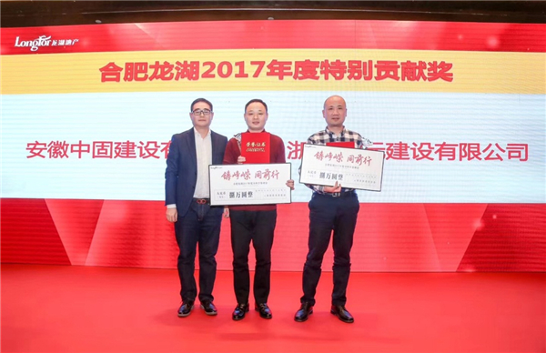 新年新氣象。在1月19日合肥龍湖2017年度分供方答謝會上,安徽中固建設有限公司榮獲2017年度特別貢獻獎,并獲得了8萬元獎金,公司總經理陶征強出席答謝會并接受頒獎。