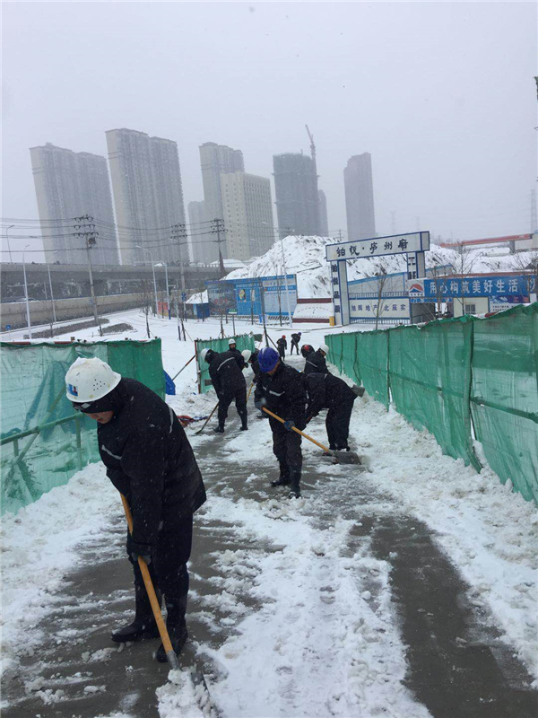 為保證各項目部道路暢通和人員安全,在中共安徽中固建設有限公司黨支部的發動下,各個項目部組織黨員突擊隊,投入到掃雪活動中來,大家不畏嚴寒,揮舞著鐵鍬和笤帚,相互配合,終于將積雪清掃干凈,用青春的汗水讓冰雪消融。