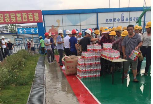 為員工發(fā)放礦泉水