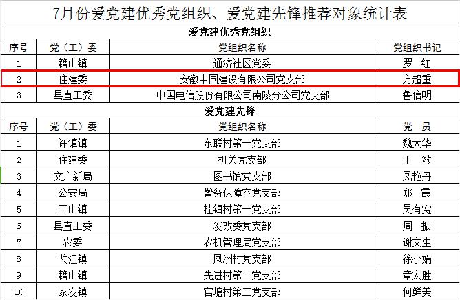 “愛黨建優秀黨組織、愛黨建先鋒”名單