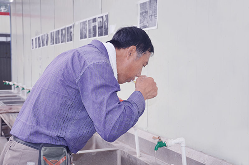 晚上17點(diǎn)30分,結(jié)束一天的勞動(dòng),張師傅收工回宿舍,他的背影給了筆者深刻的印象,這是一位建筑工人的背影,一位父親的背影,一位丈夫的背影,一位兒子的背影……