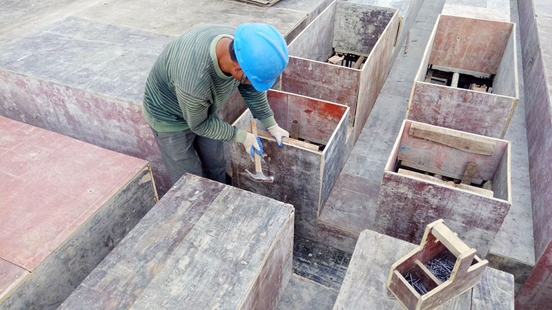 6點(diǎn)10分,筆者和張師傅走進(jìn)工地的人貨電梯,來(lái)到28層他工作的地方,木工工具錘“叮咚”的聲音四處飄散開(kāi)來(lái),仿若一首動(dòng)聽(tīng)的打擊樂(lè)。