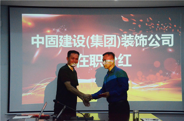 5月16日下午,中固建設(集團)裝飾公司2018年度在職分紅發放儀式在集團總部會議室舉行,中固建設(集團)常務副總裁、裝飾公司總經理(兼)徐華龍出席,集團綜合部及裝飾公司全體員工共同見證這次儀式。